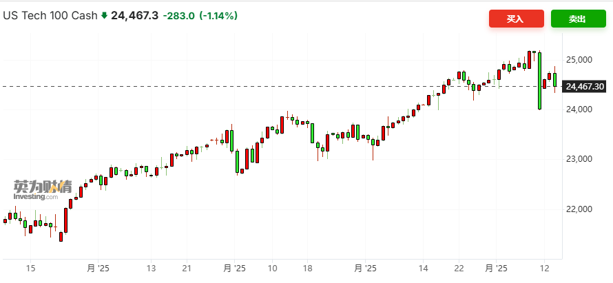 近期贸易紧张局势担忧重燃进一步影响了市场情绪。纳斯达克100指数在美股跌势中领跌,相关期货在周二下跌超1%。